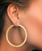 Large Round Hoop Earrings with Omega Back, Made in Italy-18K Yellow Gold over Sterling Silver