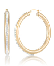 Gold Luxe® 14K Gold Bold Round Hoop Earrings with Brilliant Pave Crystals. Dent Resistant, Infused with Nano Diamond Resin Core®-Yellow Gold