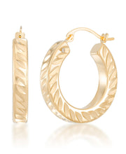 Gold Luxe® 14K Gold Diamond Cut and Hand Polished Square Tube Round Hoop Earrings. Dent Resistant, Infused with Nano Diamond Resin Core®-Yellow Gold