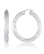 Satin and Diamond Cut Bold Round Hoop Earrings-Platinum over Sterling Silver