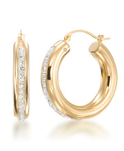 Gold Luxe® 14K Gold Round Hoop Earrings with Brilliant Pave Crystals. Dent Resistant, Infused with Nano Diamond Resin Core®-Yellow Gold