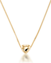 Petite Puffy Heart on Baby Curb Chain, 16" plus 2" Extender, Made in Italy-18K Yellow Gold over Sterling Silver