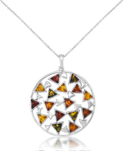 Amber Rosa™ Genuine Multicolor Amber Round Art Deco Pendant, 18"-Sterling Silver