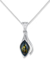 The Ambrosia® Sterling Silver Genuine Green Amber Calla Lily Pendant is a stunning piece of jewelry that combines the bright, vibrant tones of green amber with the elegance of sterling silver. Designed in the shape of calla lilies, a flower often associated with beauty and purity. The dangle design adds a touch of movement and sophistication, making it a perfect accessory for both casual and formal occasions.