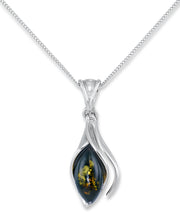 Amber Rosa™ Genuine Green Amber Calla Lily Pendant, 18"-Sterling Silver