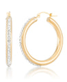 Gold Luxe® 14K Gold Round Hoop Earrings with Brilliant Pave Crystals. Dent Resistant, Infused with Nano Diamond Resin Core®
