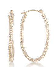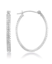 14K Gold Diamond Cut Oval Hoop Earrings-White Gold