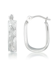 14K Gold Woven Diamond Cut Petite "U" Shape Hoop Earrings-White Gold