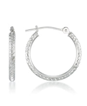14K Gold Diamond Cut Round Hoop Earrings Set-White Gold