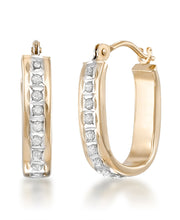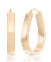 14K Gold Diamond Cut Elongated Diamond Shape Hoop Earrings-Yellow Gold