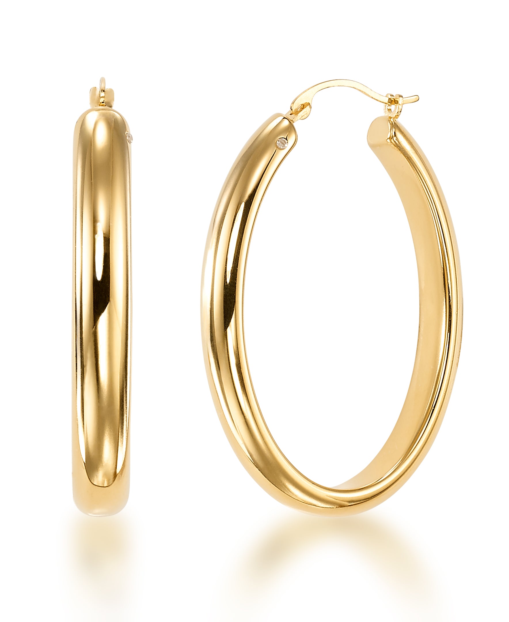Gold Luxe® 14K Yellow Gold Graduated Oval Hoop Earrings. Dent Resistant, Infused with Nano Diamond Resin Core®-Yellow Gold