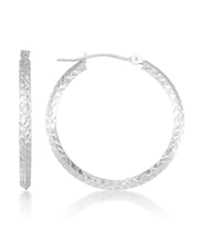 14K Gold Diamond Cut Knife Edge Hoop Earrings-White Gold