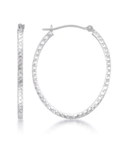 14K Gold Diamond Cut Oval Hoop Earrings-White Gold