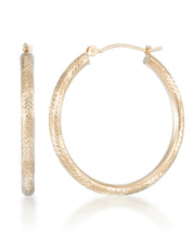 10K Gold Bold Woven Diamond Cut Square Tube Medium Round Hoop Earrings-Yellow Gold