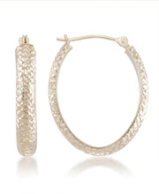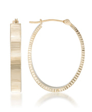 14K Gold Diamond Cut Oval Hoop Earrings-Yellow Gold