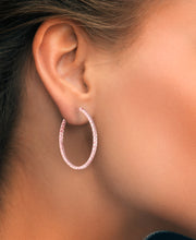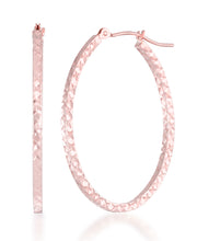 14K Gold Full Diamond Cut Oval Hoop Earrings-Rose Gold