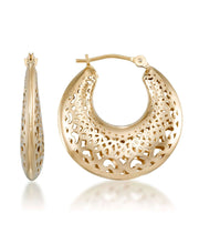 14K Gold Puffy Filigree Hoop Earrings-Yellow Gold