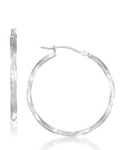 14K Gold Diamond Cut Twist Hoop Earrings-White Gold