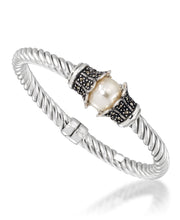 Tori Hill® Genuine Marcasite Hinged Twist Bangle with Round Simulated Pearl-Sterling Silver