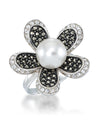 Tori Hill® Genuine Marcasite and Crystal Large Flower Ring with Perfectly Round Simulated Pearl
