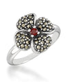 Tori Hill® Genuine Marcasite and Garnet Sculpted Flower Ring