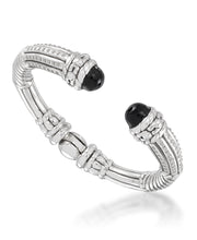 Diamond Accent Sculpted Bracelet with Black Enamel Cabachons-Platinum over Sterling Silver