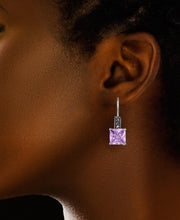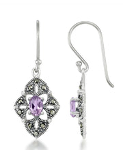 Tori Hill® Pendientes colgantes de amatista clara simulada con marcasita genuina en plata esterlina-Plata esterlina