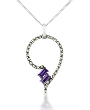Tori Hill® Colgante de forma libre de marcasita genuina y amatista simulada de 45.7 cm-Plata esterlina