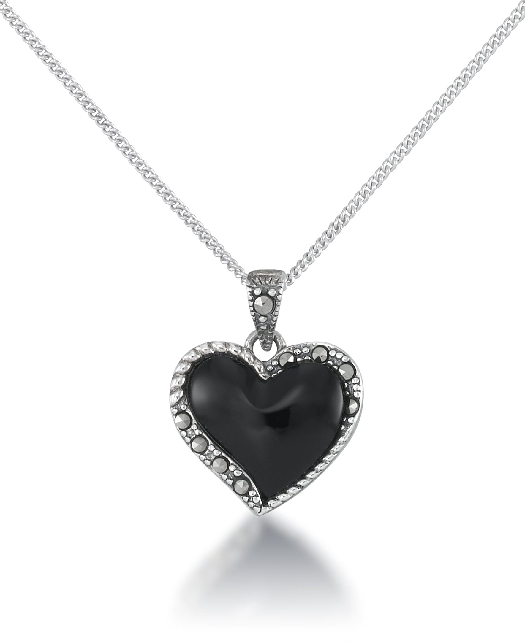 Tori Hill® Colgante de corazón de ónix negro y marcasita genuina , 45.7 cm
