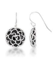 Pendientes colgantes de plata de ley con cabujón redondo auténtico y filigrana floral-Platino sobre plata esterlina