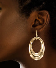 Aros ovalados con borde de cuchillo grande-Oro amarillo de 14 quilates sobre plata esterlina