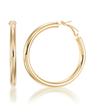 Aros grandes, redondos y pulidos con cierre omega, fabricados en Italia.-oro amarillo de 18 quilates sobre plata esterlina