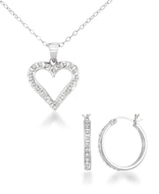 Diamond Fascination® Conjunto de pendiente y arracadas con corazón y detalles de diamantes-Platino sobre plata esterlina