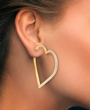 Diamond Fascination® Arracadas grandes con forma de corazón y detalles de diamantes-Oro amarillo de 18 quilates sobre plata esterlina