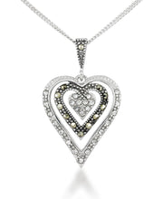Tori Hill® Colgante de doble corazón de 45.7 cm con marcasita genuina y cristales-Plata esterlina