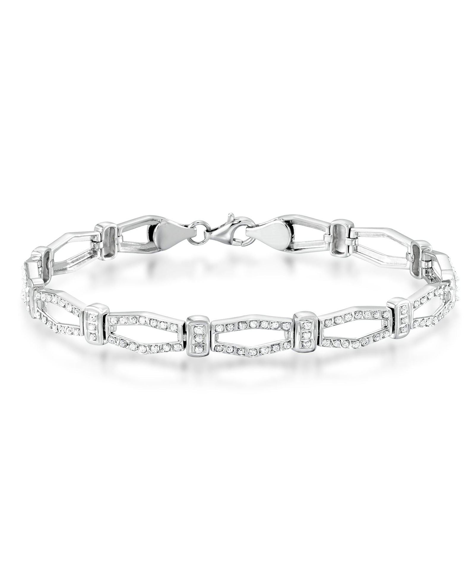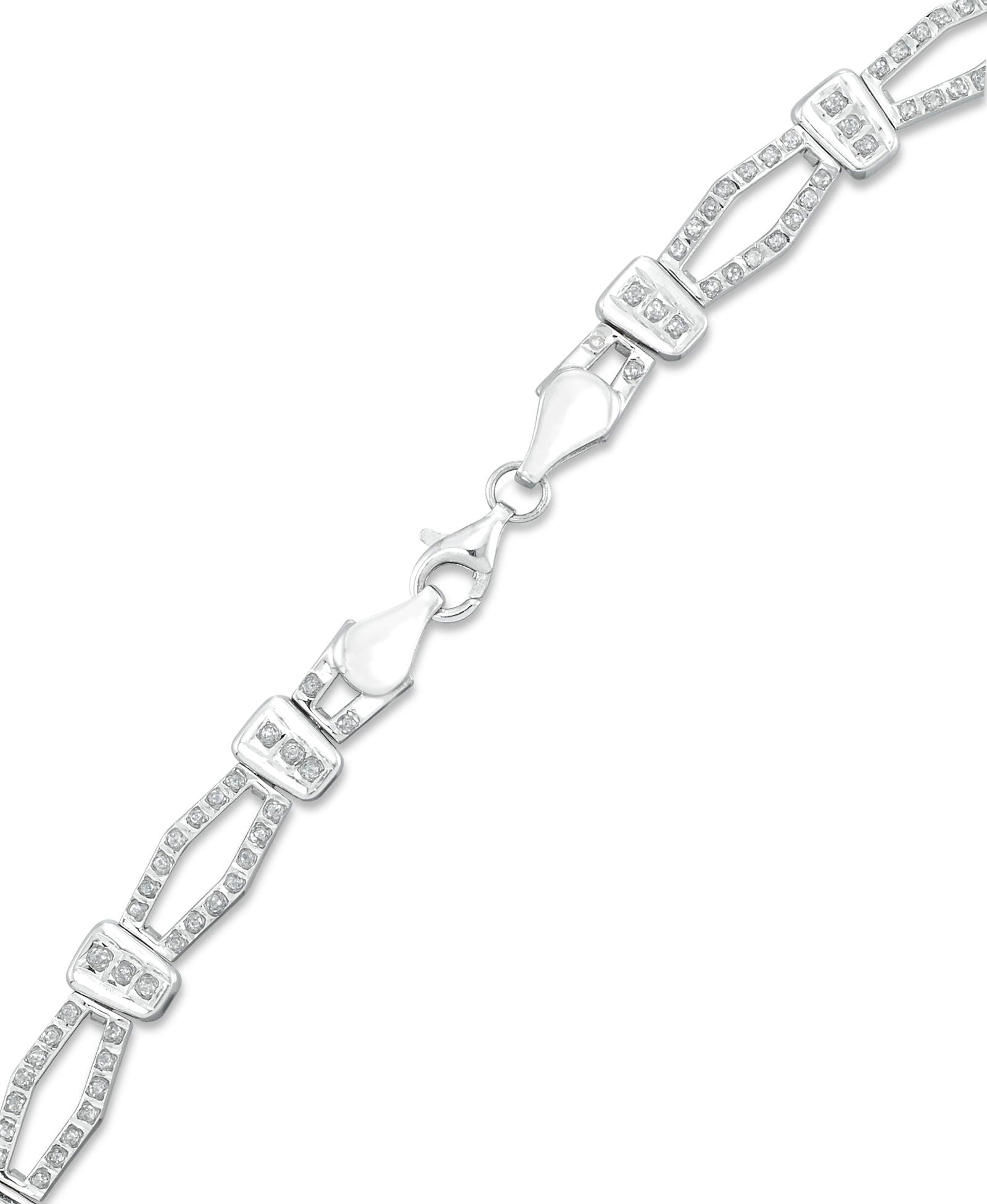 Ya sea para lucirlo como pieza destacada en una ocasión especial o como un capricho diario, nuestro collar de eslabones marquesa con acento de diamantes es un símbolo atemporal de lujo y sofisticación. Su exquisita artesanía y belleza inigualable lo convierten en una preciada reliquia que atesorarán generaciones futuras, un diseño deslumbrante de elegancia imperecedera y gusto impecable. Realza tu estilo con esta impresionante pulsera y deja que su radiante encanto ilumine cada momento con un glamour y refinamiento inigualables. Elaborado en platino sobre plata esterlina.