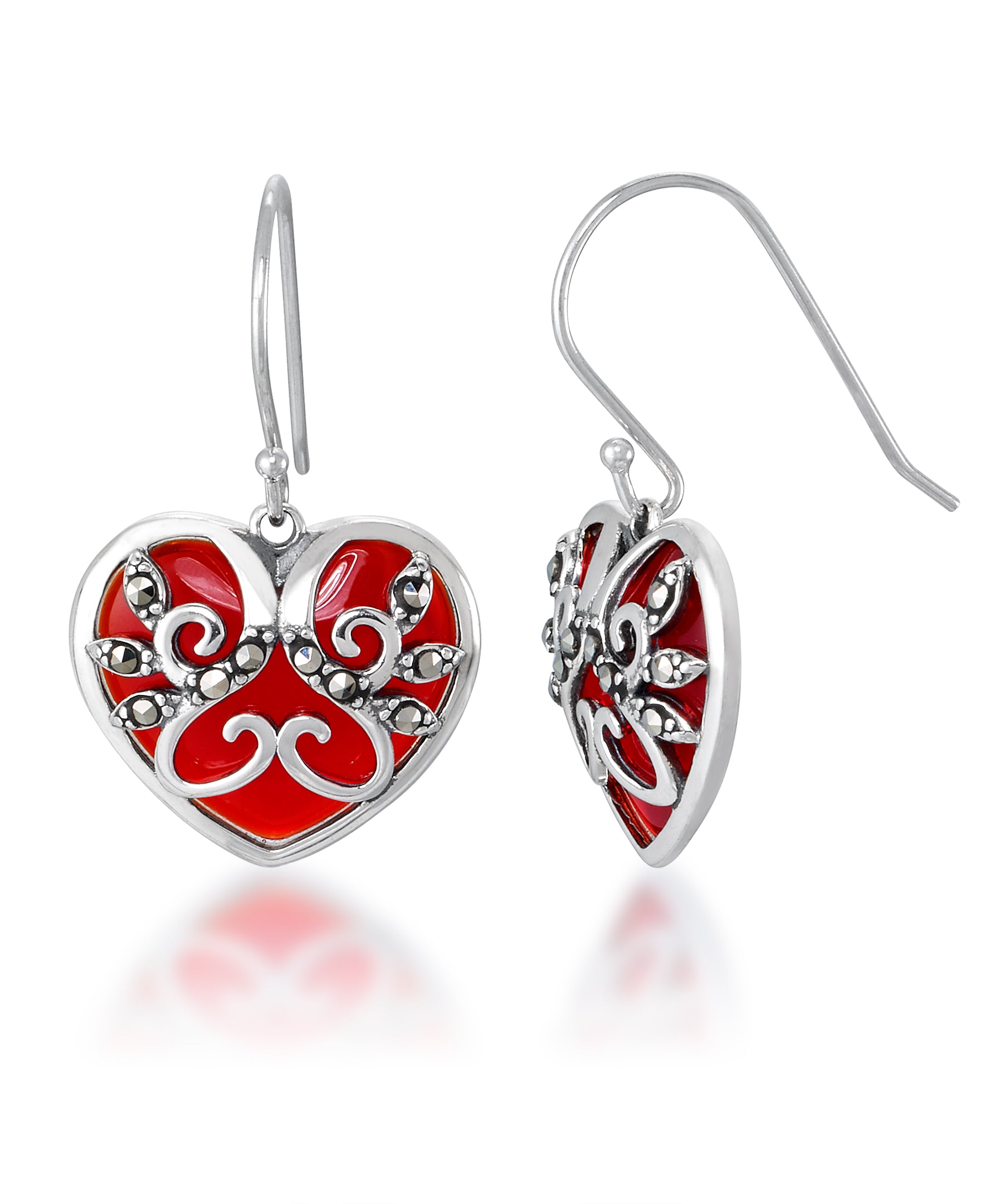 Tori Hill® Pendientes colgantes de corazón con filigrana de rubí simulado y marcasita genuina