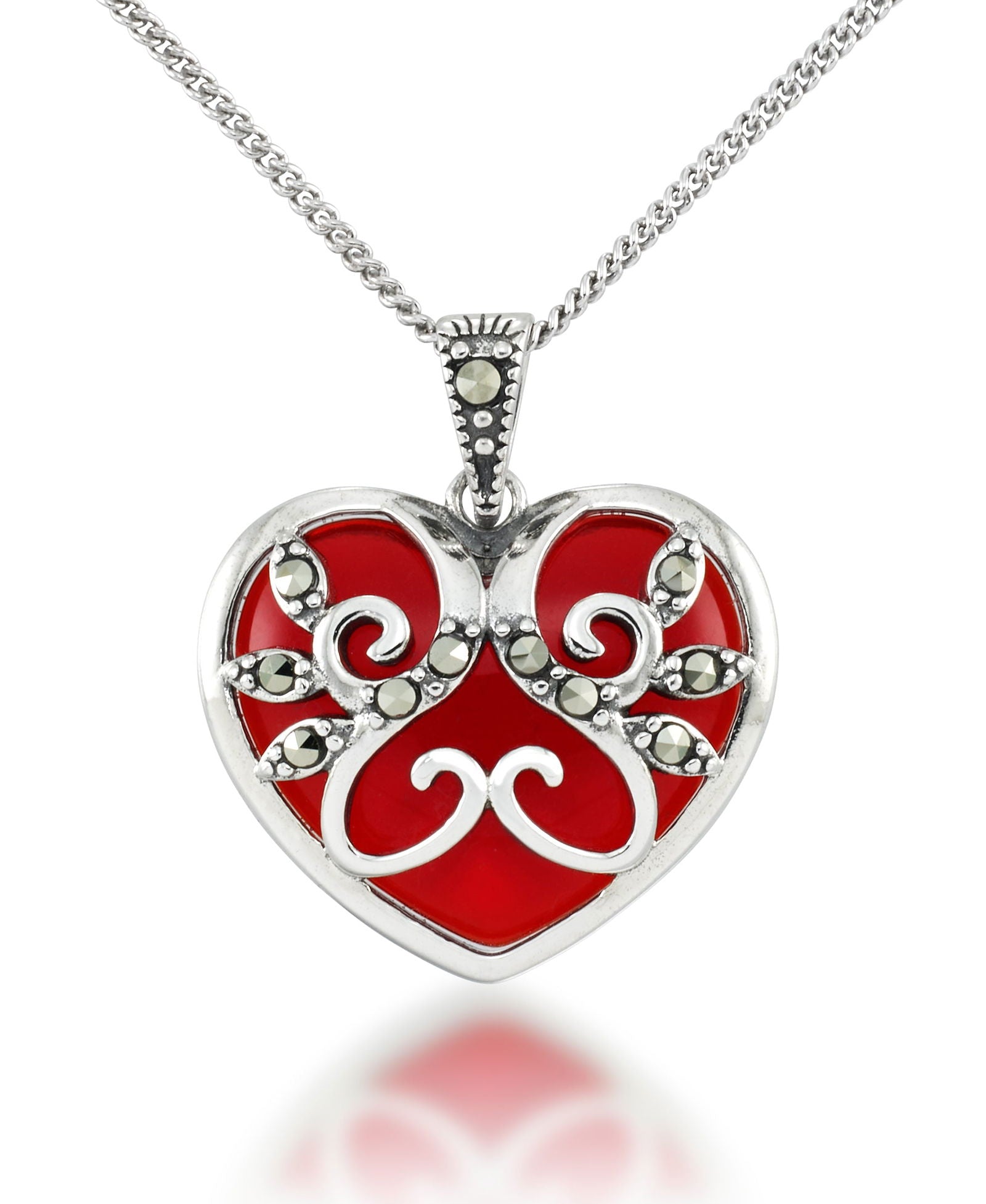 Tori Hill® Colgante de corazón de marcasita genuina y rubí simulado de 45.7 cm