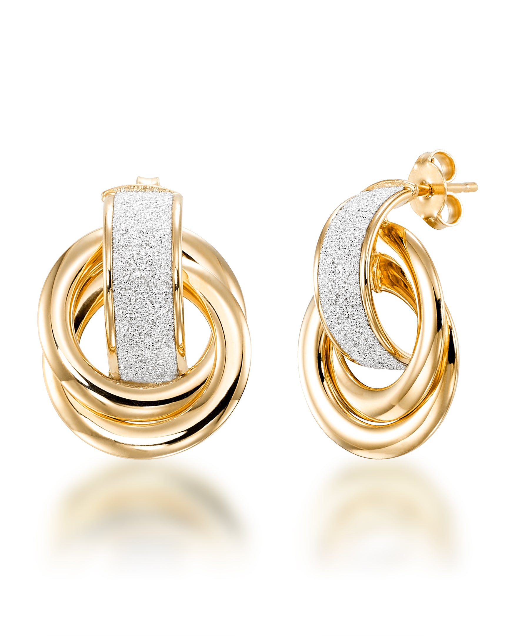 Pendientes de aldaba con nudo de amor en oro de 10 quilates con incrustaciones brillantes, hechos en Italia.