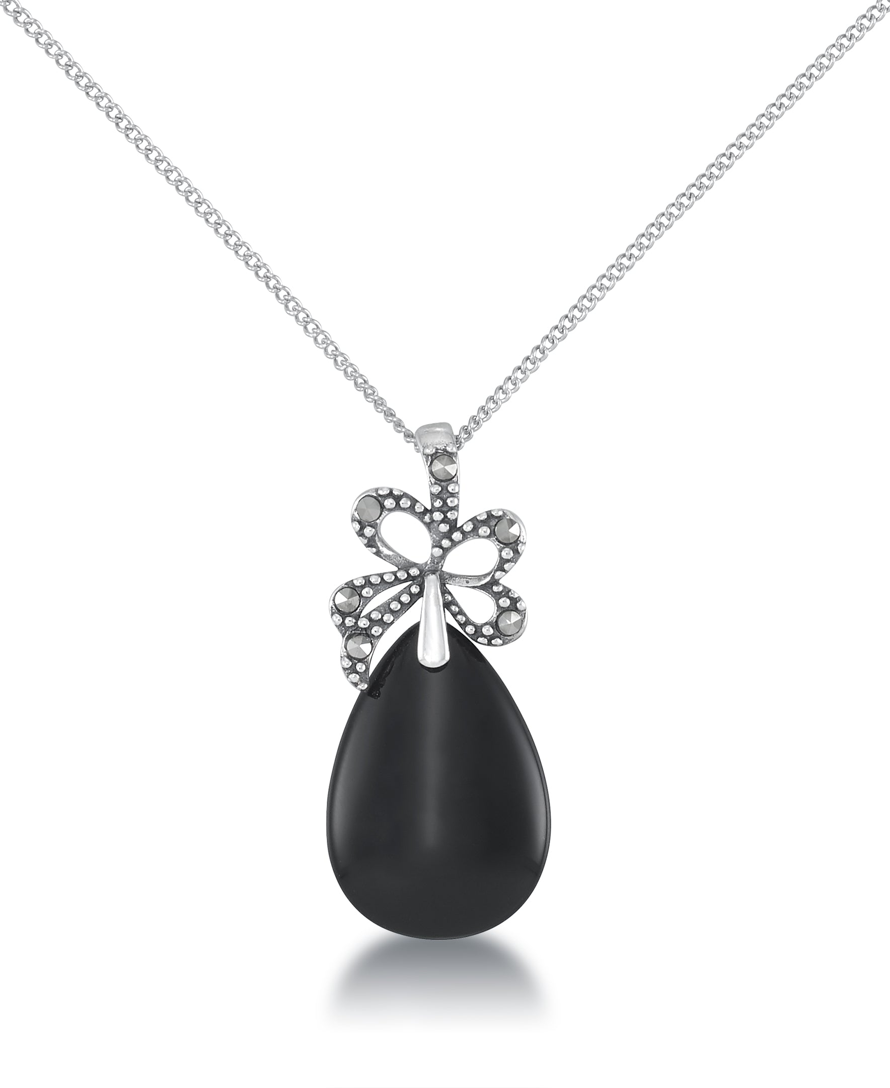 Tori Hill® Colgante de lágrima y arco de marcasita y ónix genuinos, 45.7 cm