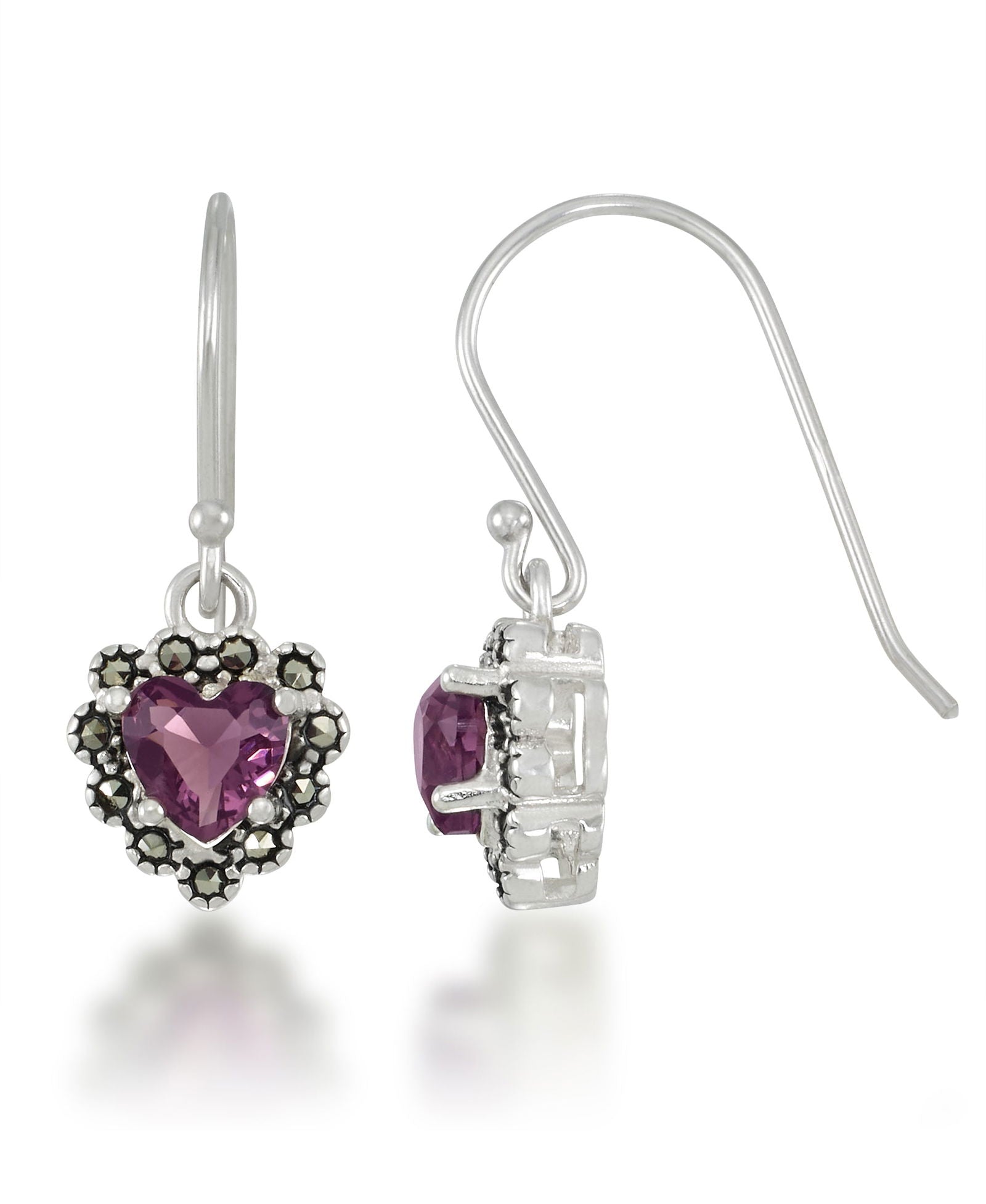 Tori Hill® Pendientes colgantes de corazón de amatista simulada y marcasita genuina