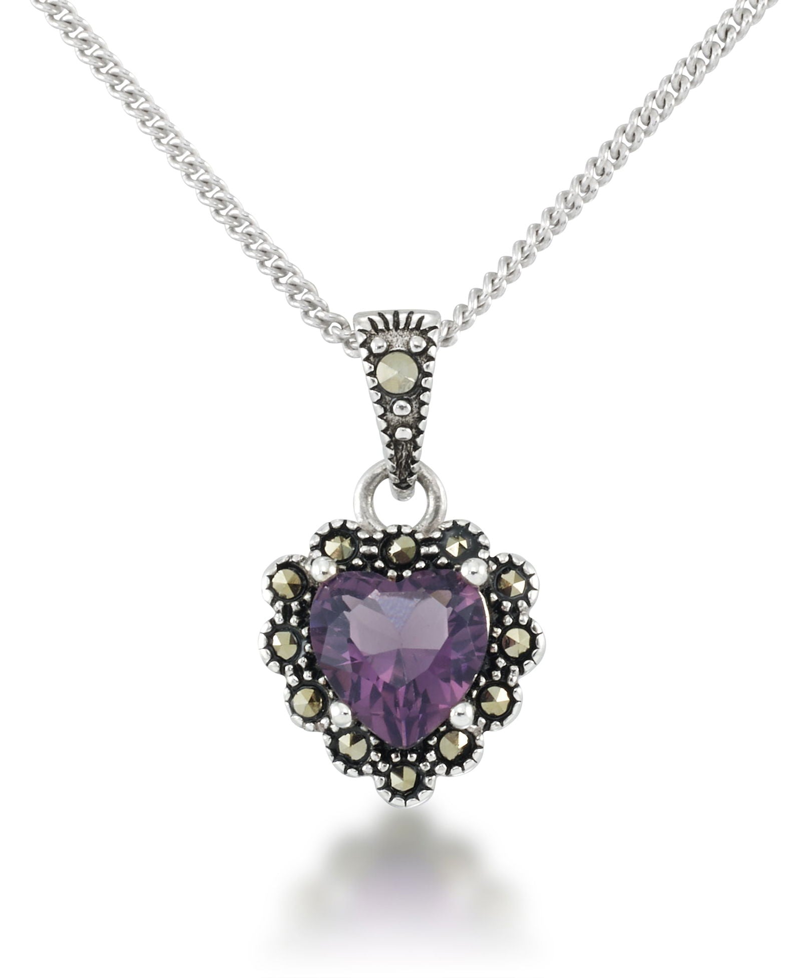 Tori Hill® Colgante de corazón de amatista simulada y marcasita genuina de 45.7 cm