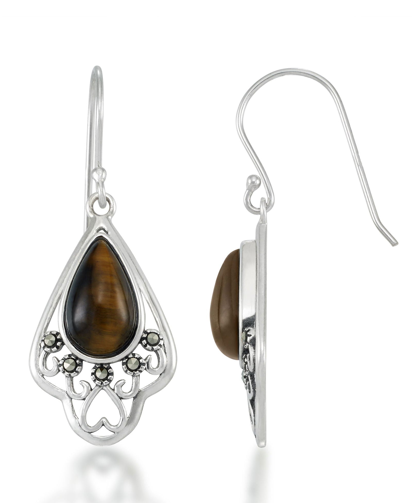 Tori Hill® Pendientes colgantes de ojo de tigre y marcasita genuinos