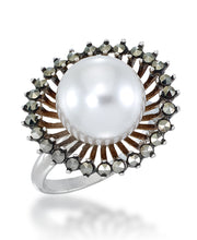 Tori Hill® Anillo de perla simulada grande con marcasita genuina-Plata esterlina